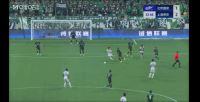 杨皓宇伸脚绊法比奥&后者捂腿倒地,马宁向杨皓宇出示黄牌